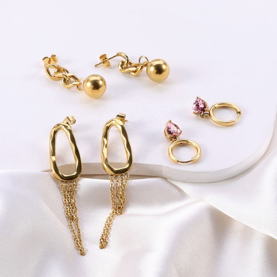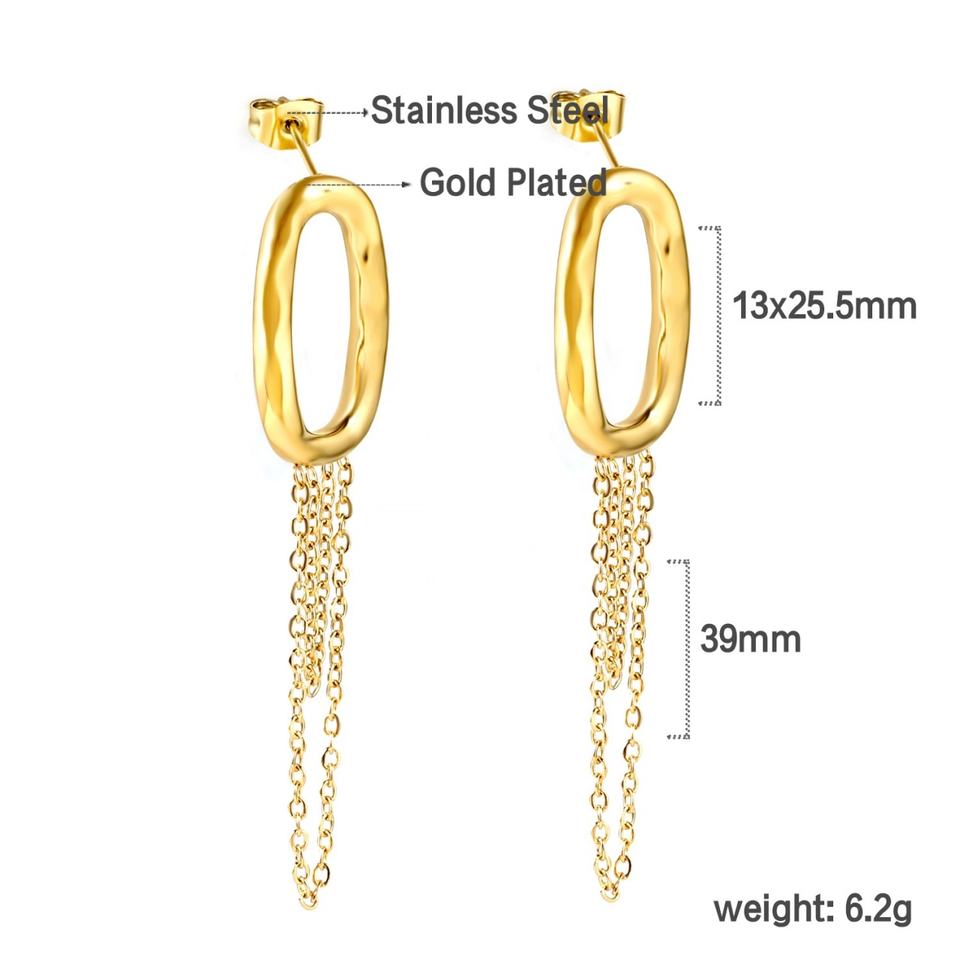ต่างหูห่วงแบบหนีบประดับเพชรซิร์คอนชุบทอง 18k สไตล์แฟชั่นยอดนิยม ต่างหูห้อยระย้าโซ่พู่ห้อยทำจากสแตนเลสสำหรับผู้หญิง