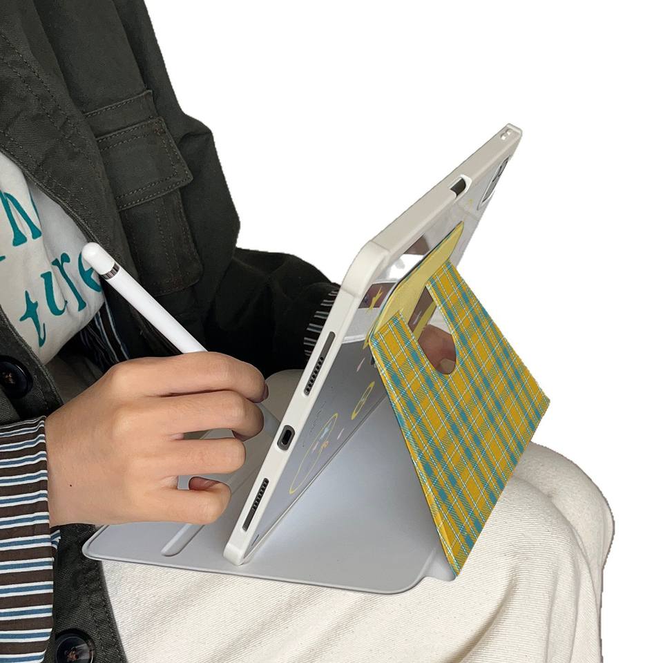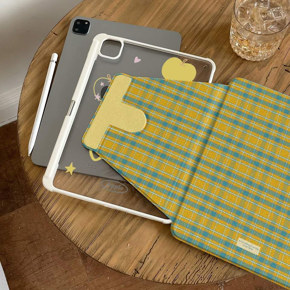 INS กรอบแบนขนาดเล็กลายสก๊อตสำหรับ Apple Ipad Mini ที่ยึดกระจกหมุนได้10ช่องพร้อมช่องใส่ปากกาย้อนยุค Pro