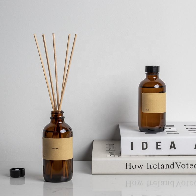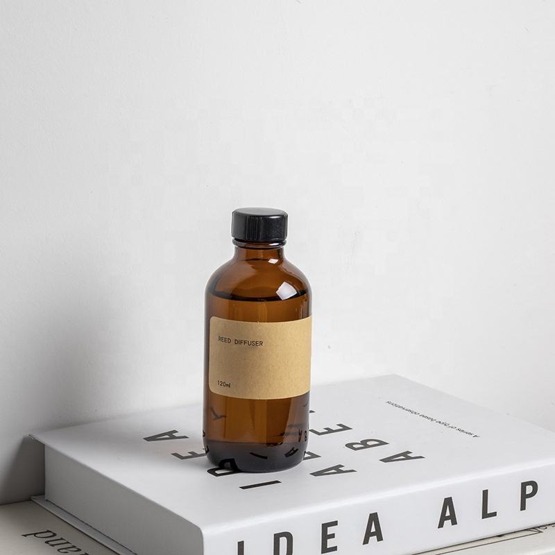 ins style boston round amber reed diffuser glass bottle 100ml 120ml 4oz with box rattan sticks