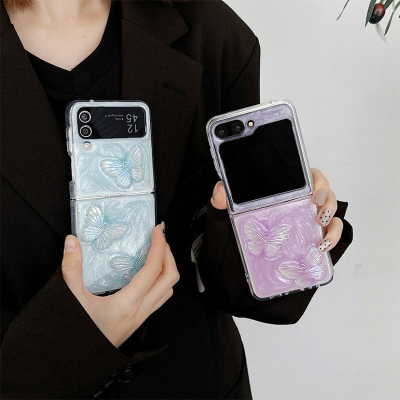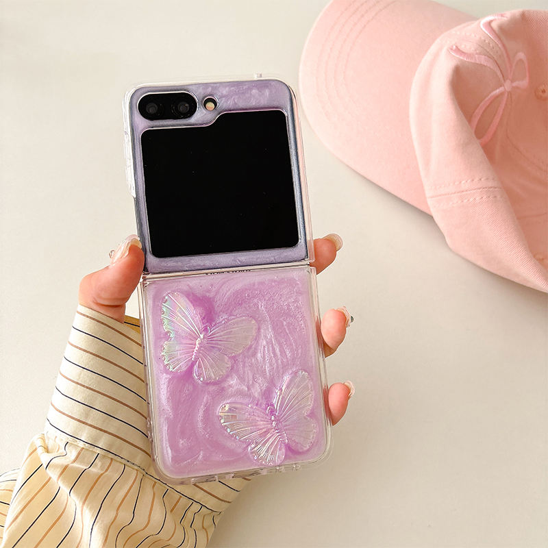 เคสมือถือ zflod 5สไตล์ INS สำหรับ flip6 Z เคสโทรศัพท์อีพ็อกซี่สีทึบลายผีเสื้อ W24flip zflip5ซัมซุงเกาหลี