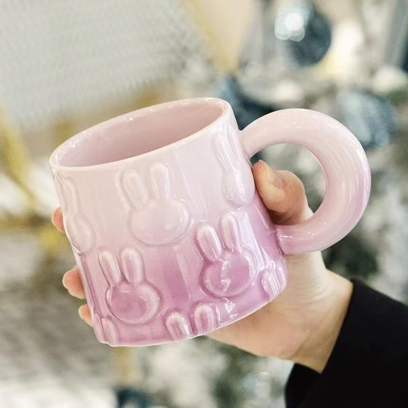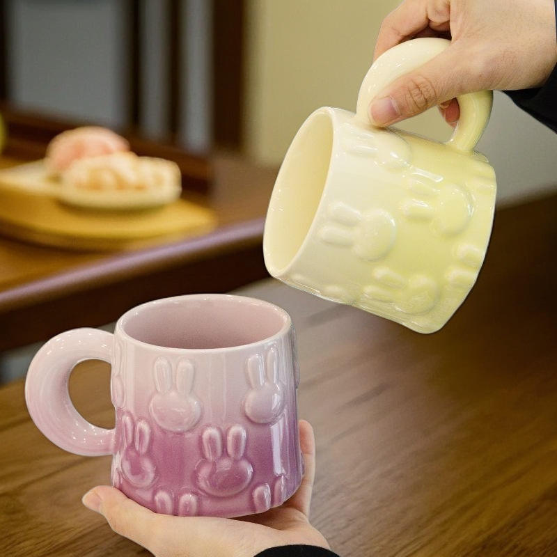 แก้วเซรามิคลายกระต่ายน่ารัก ขนาด 400 มล. ดีไซน์ไล่เฉดสีสไตล์ Ins รักษ์โลก เหมาะสำหรับดื่มชาเวลาบ่าย ใช้ในบ้าน สำนักงาน หรือใส่นม