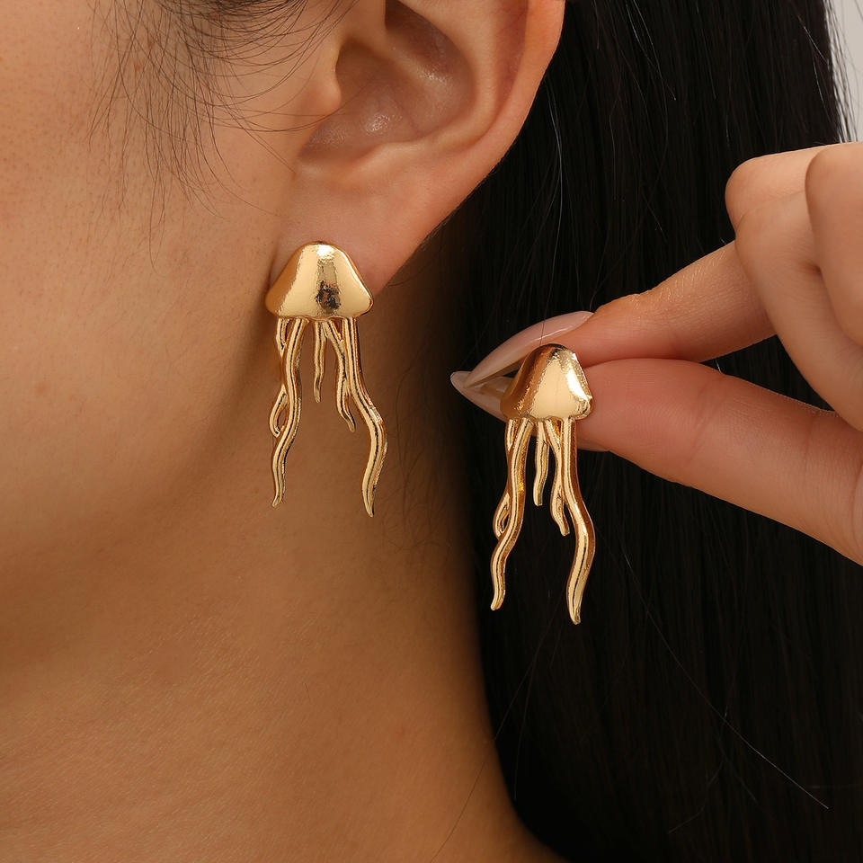 เครื่องประดับพู่ห้อยสไตล์มินิมอลสุดหรู ดีไซน์รูปแมงกะพรุน ทำจากสแตนเลสชุบทอง เรียบเนียน เหมาะเป็นของขวัญ