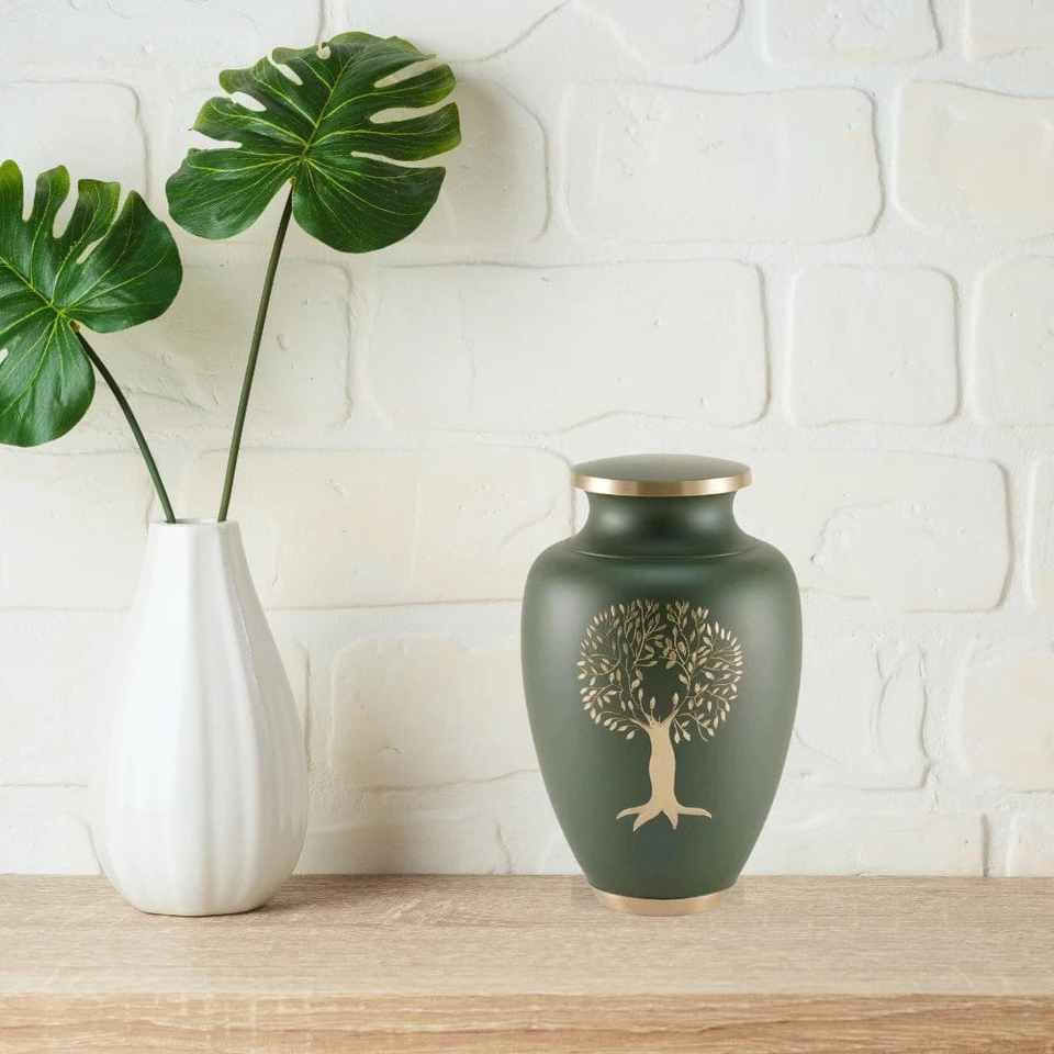 โกศบรรจุอัฐิแบบยุโรป ดีไซน์ใหม่จาก Insh Overseas ทำจากทองเหลืองแท้ รูปทรงต้นไม้แห่งชีวิต ปรับแต่งได้ สำหรับผู้ใหญ่ ขนาด 200 คิวบิกอินช์ พร้อมอุปกรณ์เสริมสำหรับโลงศพ