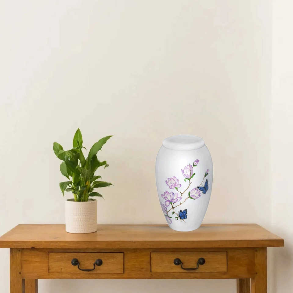 โกศบรรจุอัฐิสำหรับผู้ใหญ่ แบบยุโรปสมัยใหม่ ผลิตโดย Insh Overseas ปรับแต่งได้ ทำด้วยมือจากอะลูมิเนียม รูปทรงกระบอก ความจุ 3-4 ลิตร