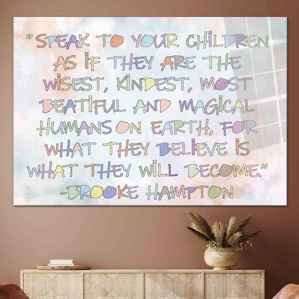 ภาพพิมพ์บนผ้าใบคำคมสร้างแรงบันดาลใจ: พูดคุยกับลูกของคุณ ศิลปะบนกระจกนิรภัย