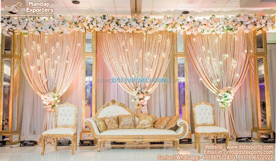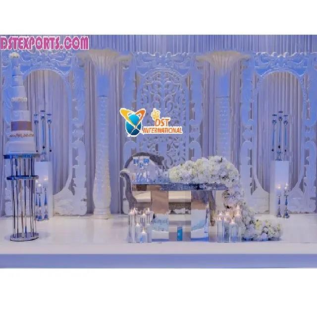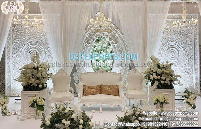 ฉากหลังงานแต่งงานธีมสีขาวสร้างแรงบันดาลใจฉากหลังเต่งงานบอลลีวู้ดหรูหราการตกแต่งเวทีแต่งงานสไตล์แกรนด์วิคตอเรียแบบพกพา