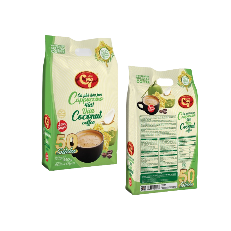 Competitive Price 4-in-1 Instant Coffee Powder Vietnam Factory Coconut Cream Fruit Chocolate Hot Water Cappuccino Box Packaging