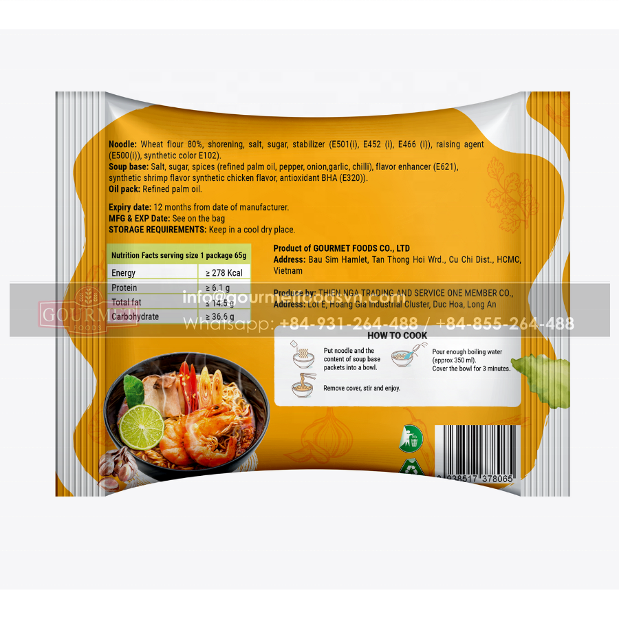 ชื่อผลิตภัณฑ์:อร่อยมากรสชาติไทยหม้อไฟกุ้งเปรี้ยวและเผ็ด85กรัม