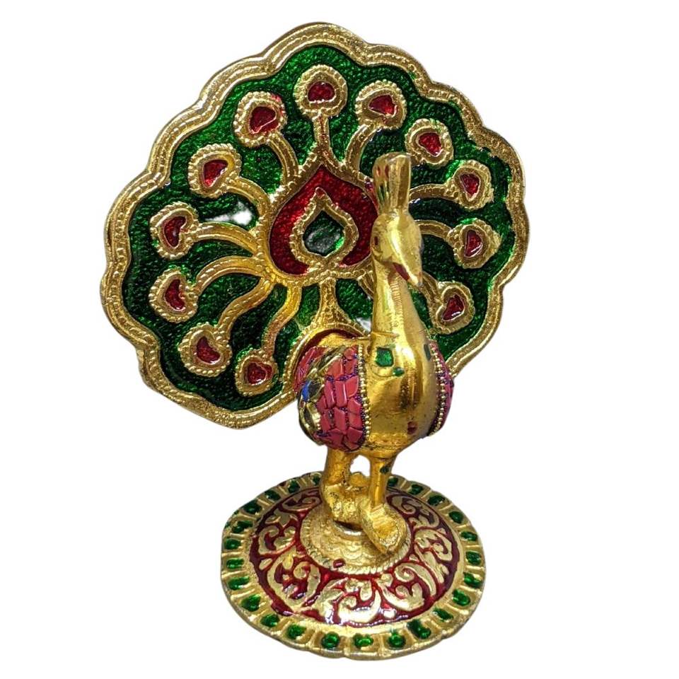 พรีเซ้นท์โชว์นกยูงสไตล์วินเทจทำจากทองเหลืองงาน meenakari สำหรับตกแต่งคริสต์มาส