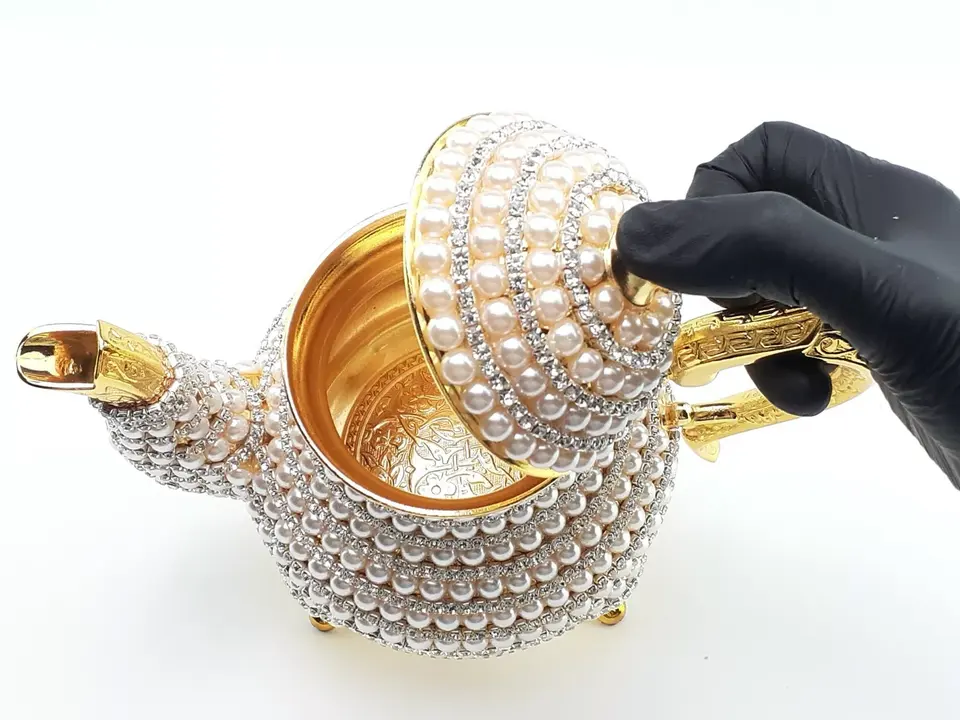 กาน้ำชาทองเหลืองแบบดั้งเดิม ดีไซน์มุก สำหรับใช้ในบ้าน อุปกรณ์ครัว ชา ยี่ห้อ Instant Traders เป็นมิตรกับสิ่งแวดล้อม หรูหรา