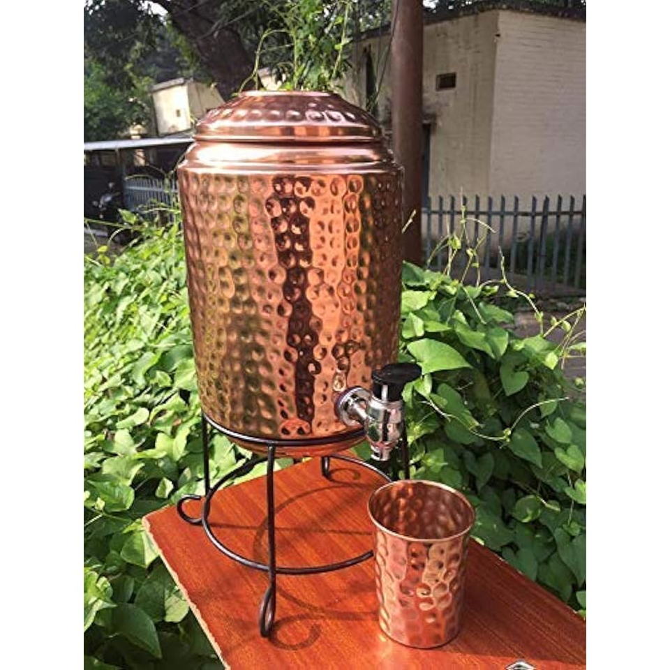 อินสแตนท์เทรดเดอร์ส แก้วน้ำโลหะ ทองแดงแท้ 100% เป็นมิตรกับสิ่งแวดล้อม ฝาปิดแบบอเมริกัน สำหรับเครื่องจ่ายน้ำ ความจุ 3.5 แกลลอน ขนาดใหญ่พิเศษ