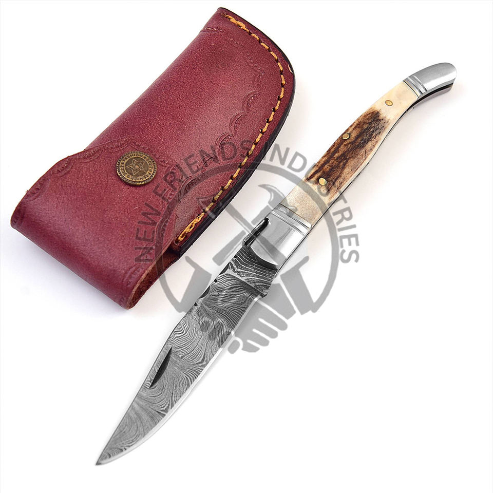 มีดพับอเนกประสงค์สำหรับล่าสัตว์ในชีวิตประจำวันแบบทำมือคลิปเหล็กดามัสกัสแนวผจญภัยตามสัญชาตญาณ