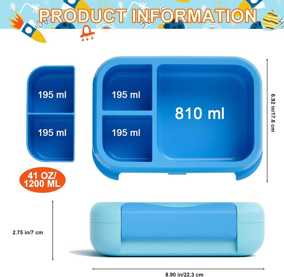 กล่องข้าวเก็บอุณหภูมิแบบแบ่งช่อง พร้อมขวดน้ำพลาสติกสองใบ ใช้กับไมโครเวฟได้ สำหรับใส่ขนม แซนวิช และอาหาร