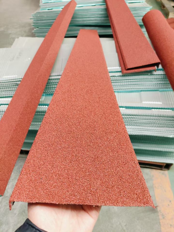 แผ่นหลังคาโลหะหุ้มฉนวนแผ่นเหล็กเคลือบหินสีมีสันมุมรางน้ำหุบเขามีไฟกระพริบ