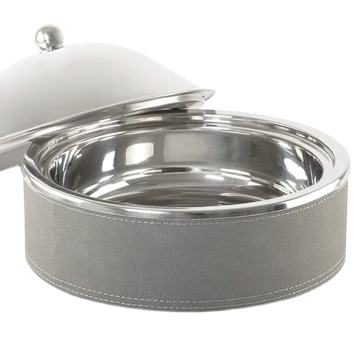 หม้อต้มสแตนเลสทรงกลมหุ้มฉนวนพร้อมฝาปิดทำจากหนัง | เครื่องอุ่นอาหารทันสมัย