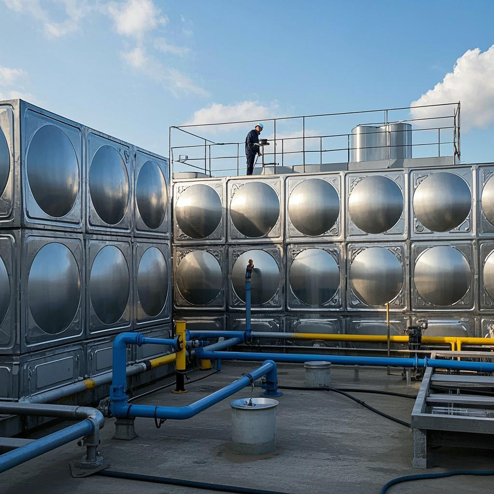 ถังน้ำสแตนเลสหุ้มฉนวน316 304ถังโมดูลาร์ป้องกันการกัดกร่อนสำหรับเก็บน้ำเย็นร้อน