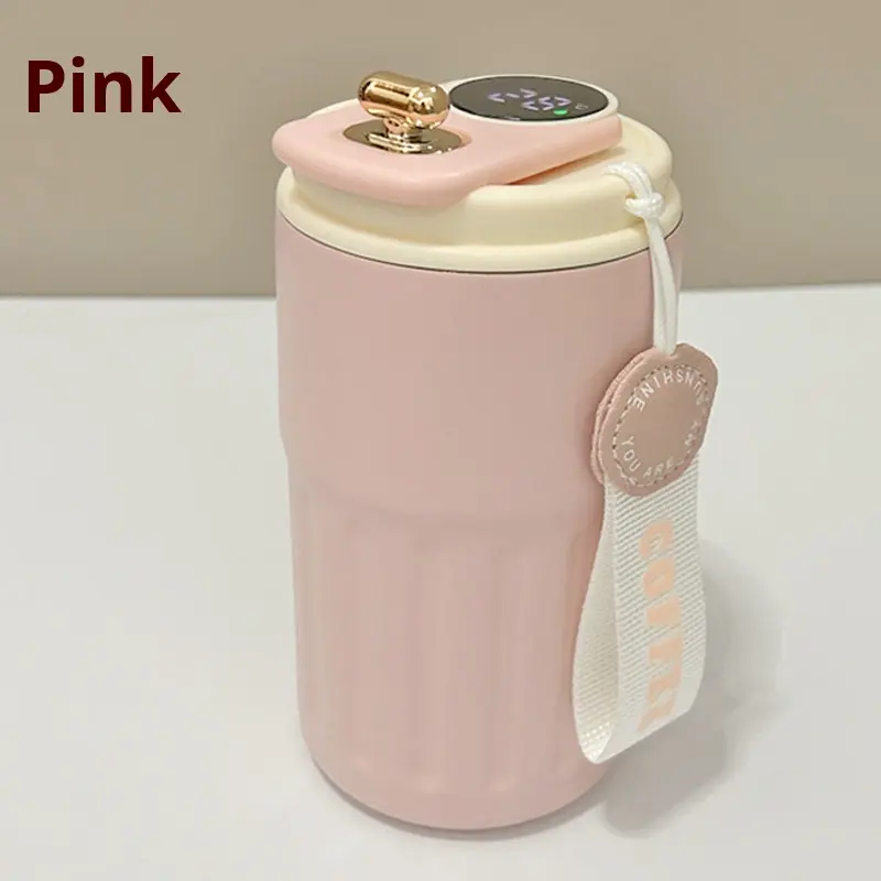 แก้วกาแฟเก็บความร้อนแบบพกพา แก้วน้ำอัจฉริยะ สแตนเลส 316 พร้อมฝาแสดงอุณหภูมิ