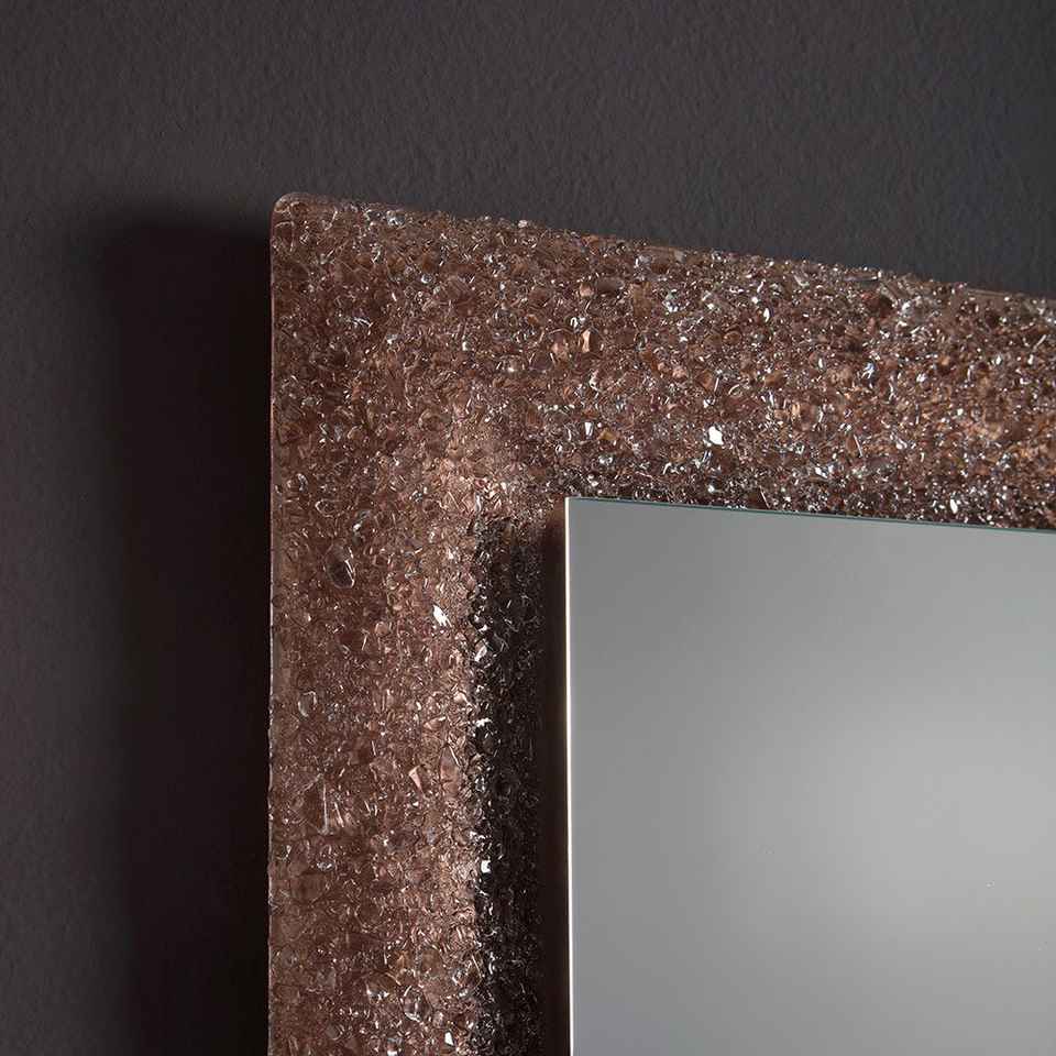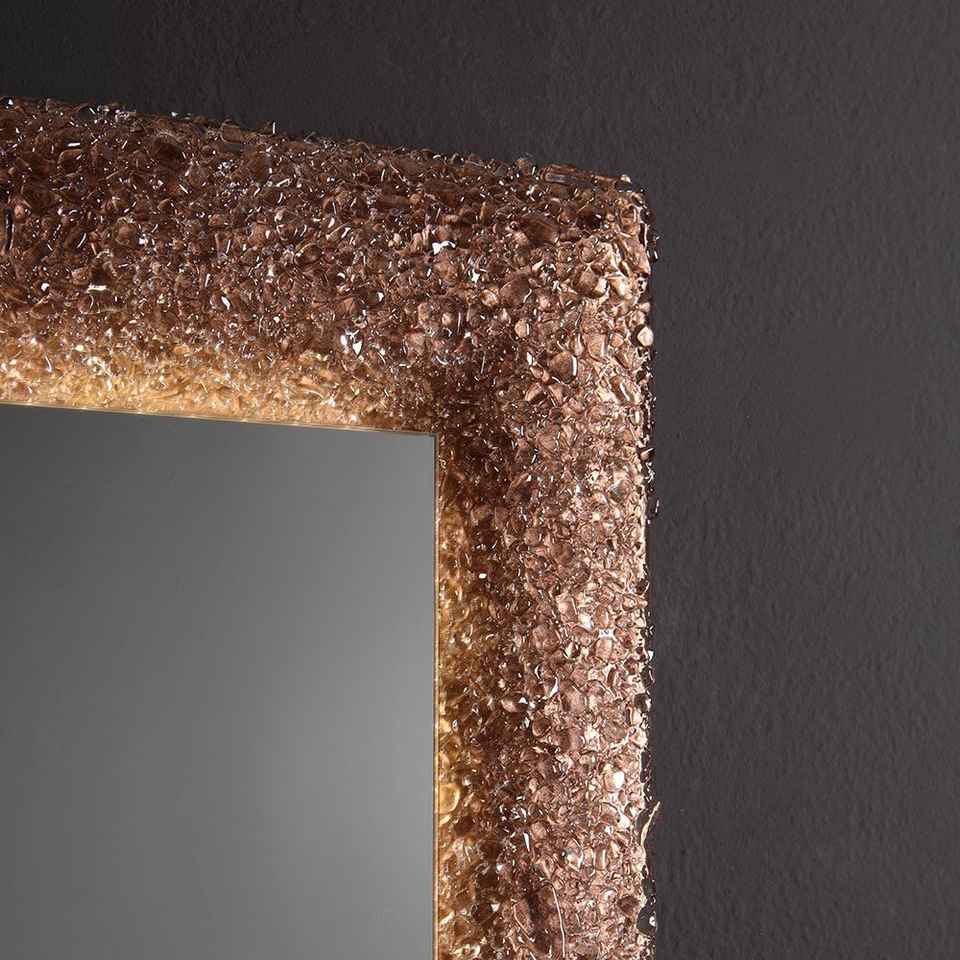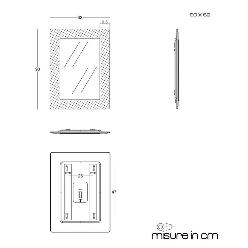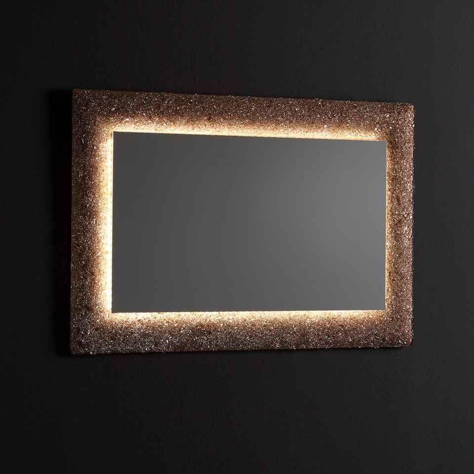 กระจก LED 90x62 นิ้วแบบรวมในตัวพร้อมกรอบกระจกฝังเม็ดบราวน์