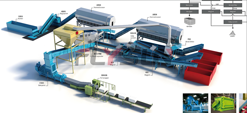 เครื่องคัดแยกขยะแบบบูรณาการโรงงานจัดการขยะในเมืองเครื่องคัดแยกขยะแบบเทศบาล