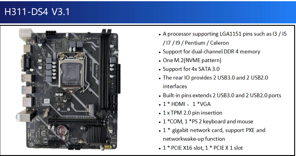 แรม:2 * DDR4 DIMM, 2133,2400,2666 MHz เดี่ยวสล็อตสนับสนุนสูงสุด32G