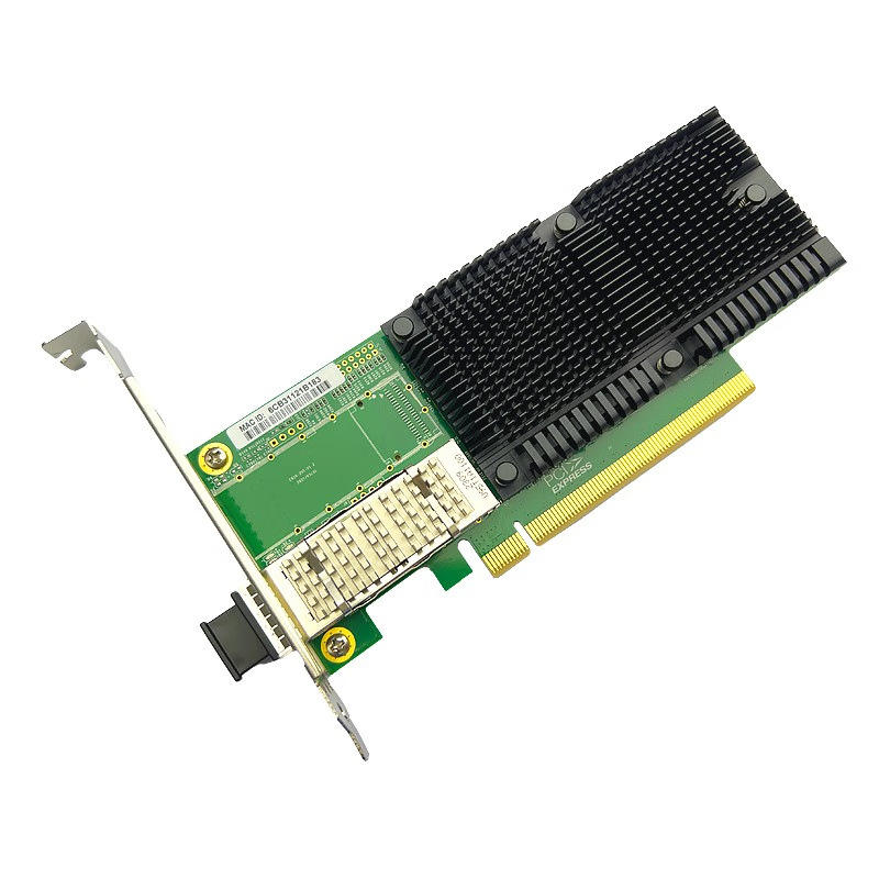 ชิป E810 Intel 100G การ์ดเครือข่าย QSFP28ใยแก้วนำแสงอินเตอร์เฟซ PCIe-X16พอร์ตสี่พอร์ตแบบคู่10Gbps ส่ง PCIE ภายใน