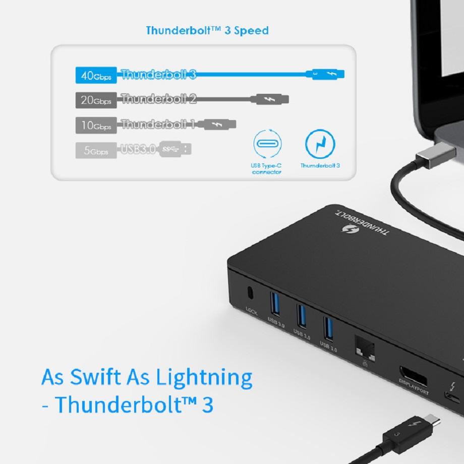 40Gbit/S Thunderbolt 3 4 K สถานีเชื่อมต่อกับพอร์ต Giga