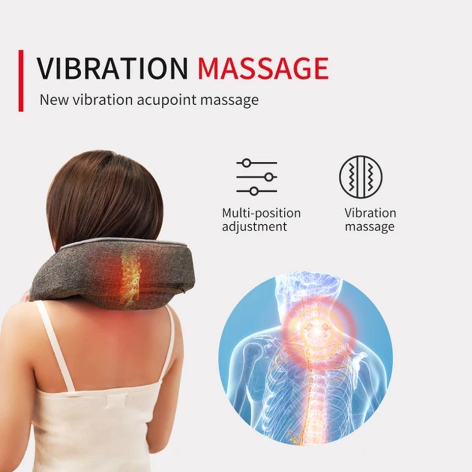 หมอนรูปตัวยูอัจฉริยะ 6 มิติ อินฟราเรด ไฟฟ้าไร้สาย สำหรับบรรเทาอาการปวดคอ พร้อมฟังก์ชั่นให้ความร้อนและนวด