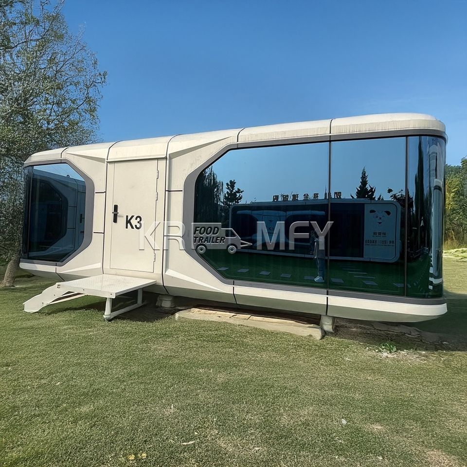 บ้านอัจฉริยะ AI สำเร็จรูป วัสดุ HDPE หนาพิเศษ ปรับแต่งได้ กันน้ำ เป็นมิตรกับสิ่งแวดล้อม บ้านคอนเทนเนอร์ทรงแคปซูลอวกาศ