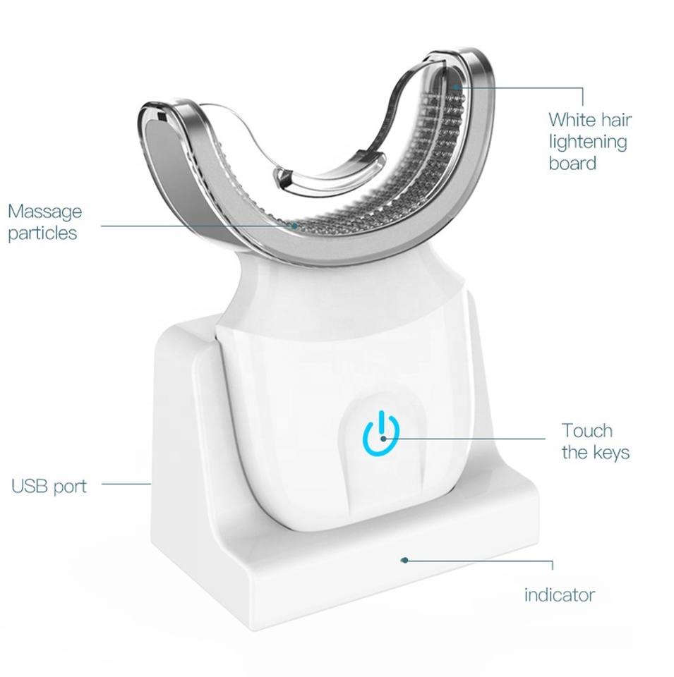 แปรงสีฟันไฟฟ้าโซนิคอัตโนมัติอัจฉริยะ รูปแบบ U 4 โหมดแปรงสีฟัน ชาร์จ USB ฟอกสีฟันด้วยแสงสีฟ้า