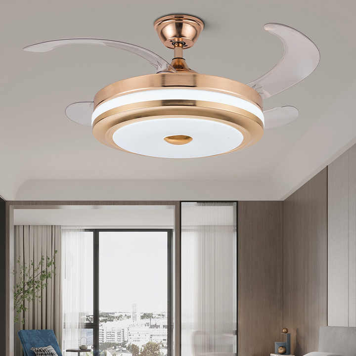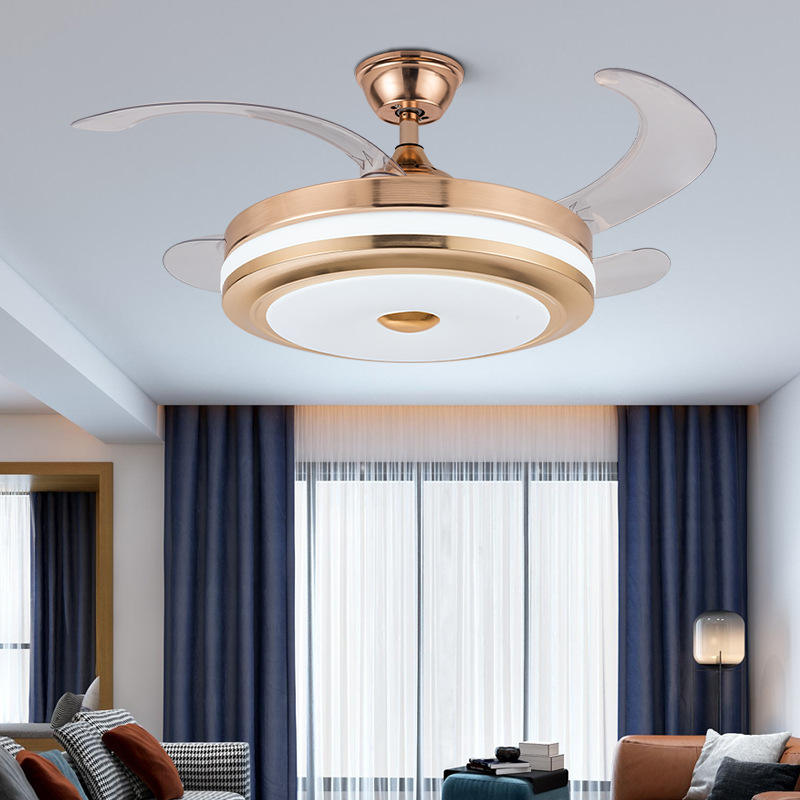 โคมไฟพัดลมติดเพดานอัจฉริยะทันสมัยพร้อมรีโมทคอนโทรลดีไซน์เงียบและประหยัดพลังงานสำหรับใช้กลางแจ้งที่บ้านโดยใช้ USB/ใช้แก๊ส