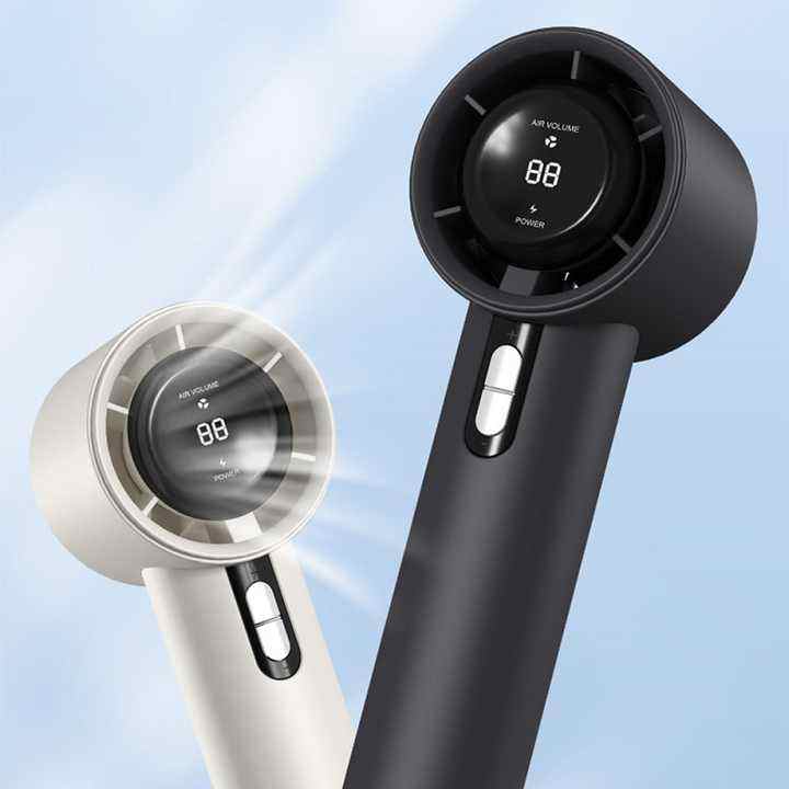พัดลมพกพาขนาดเล็กแบบพกพาความเร็วสูงหน้าจอแสดงผลดิจิตอล LED ระบบลมเงียบและทรงพลังพัดลมพกพาขนาดเล็ก