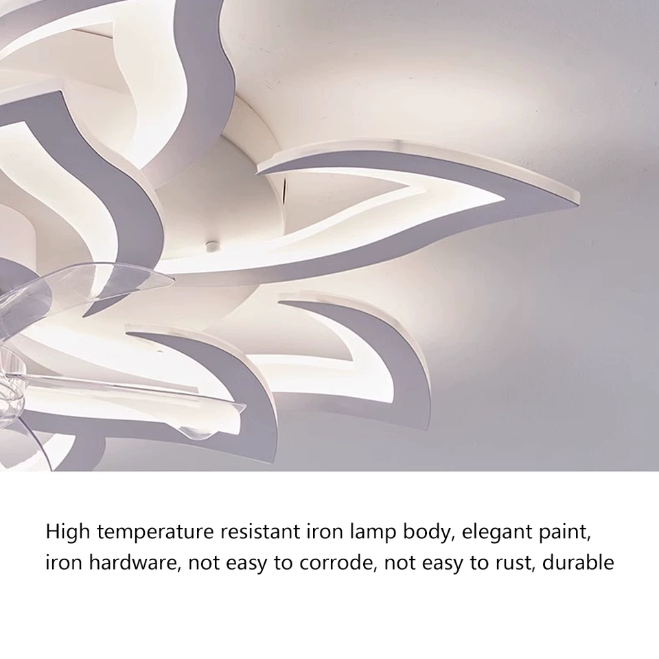 ไฟดอกไม้ LED อัจฉริยะทันสมัยพร้อมรีโมทคอนโทรล พร้อมพัดลมเพดานปรับความสว่างได้ 6 ระดับ สำหรับห้องครัว ห้องนอน ห้องนั่งเล่น