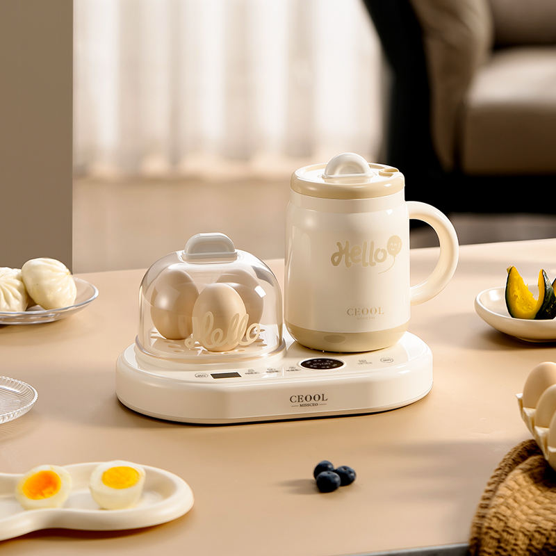เครื่องทำอาหารเช้าอัจฉริยะอเนกประสงค์ขนาดเล็ก กาต้มน้ำไฟฟ้า 2-in-1 เครื่องนึ่งไข่อัตโนมัติ ไร้เสียงรบกวน สำหรับใช้ในครัวเรือน