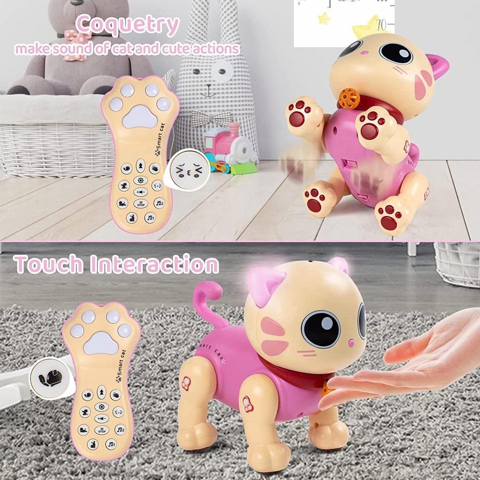 ของเล่นแมวหุ่นยนต์อัจฉริยะ ควบคุมด้วยรีโมท พร้อมฟังก์ชั่นโต้ตอบด้วยเสียงและสัมผัส เต้นได้ ควบคุมการเคลื่อนไหว สำหรับเด็ก