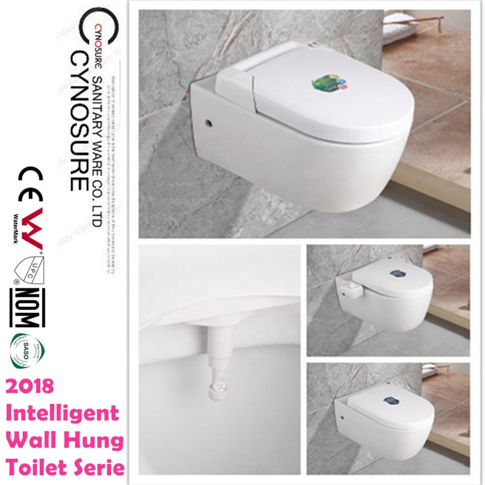 โถสุขภัณฑ์อัจฉริยะแบบแขวนผนัง พร้อมฝาปิดและระบบชำระล้างอัตโนมัติ