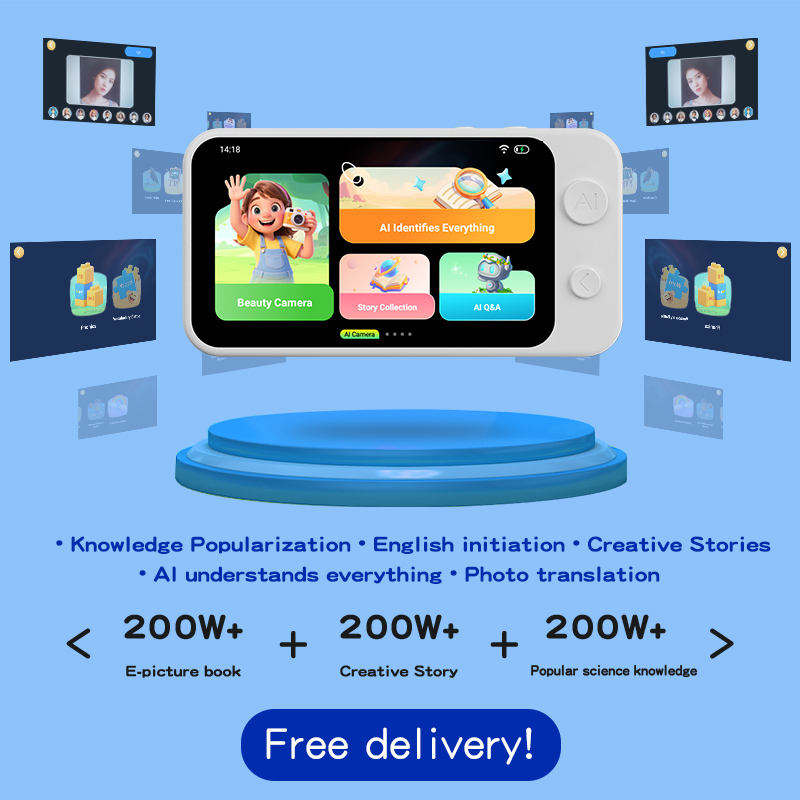 กล้องของเล่นสอนภาษาสำหรับเด็กแบบโต้ตอบได้ พร้อมระบบ AI ฝึกการรับรู้วัตถุ ฉายภาพเกมส์ เครื่องเรียนรู้ขนาดเล็ก รูปแบบการ์ตูน