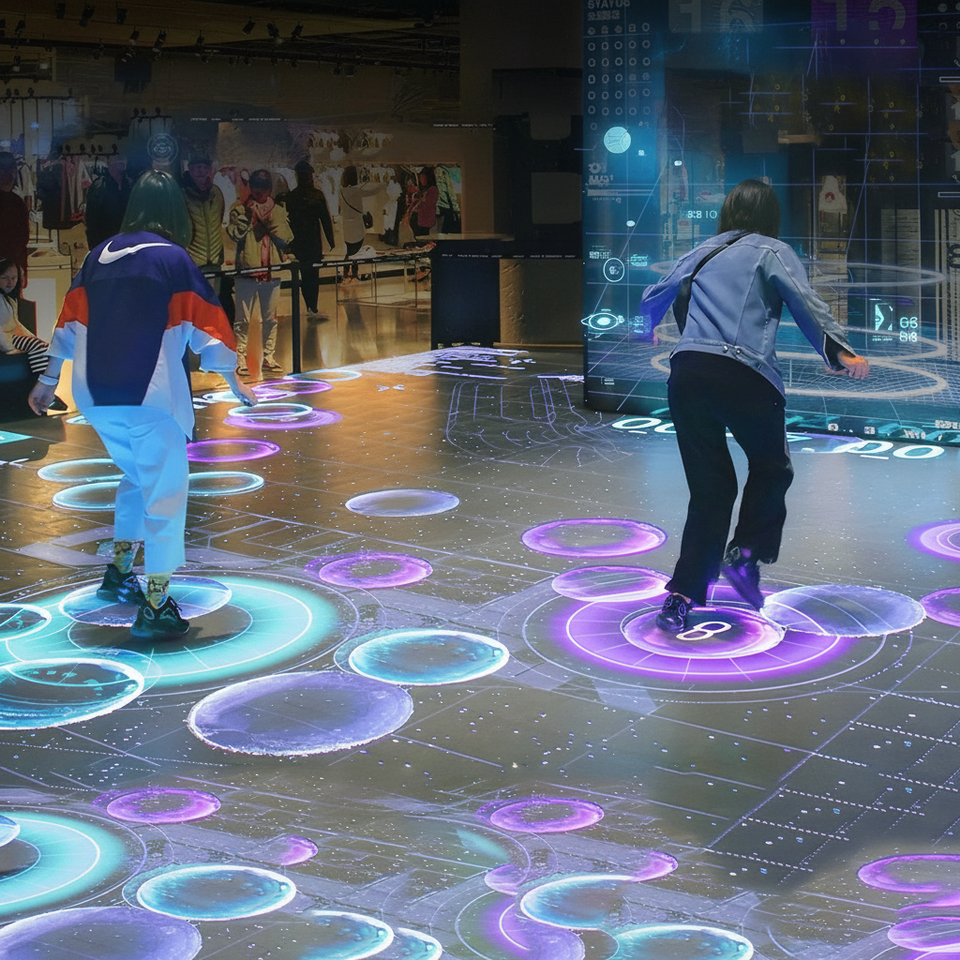 ผนังกระเบื้องดิจิตอลแบบอินเทอร์แอคทีฟสำหรับเล่นเกมวิดีโอเวทีเต้นรำแผงผนังแบบสัมผัส