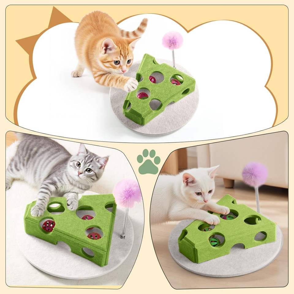 ของเล่นที่ป้อนปริศนารูปแมวขนแกะเป็นมิตรกับสิ่งแวดล้อมแบบโต้ตอบทนทานเครื่องจ่ายรูปชีสสั่นลูกบอลไม้กายสิทธิ์ทีเซอร์