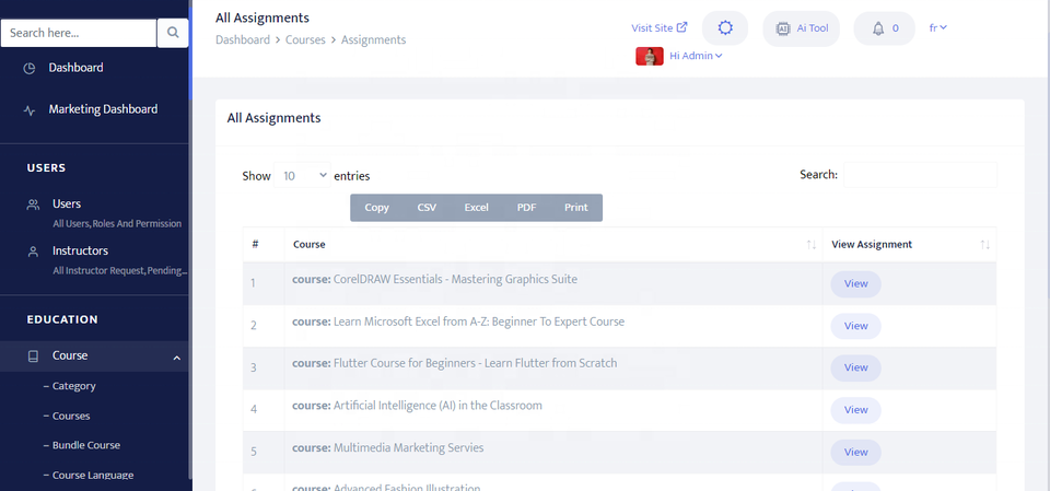 แพลตฟอร์มการเรียนรู้แบบโต้ตอบสำหรับนักเรียนที่มีการสอบหลักสูตรใบรับรองและแผงการวิเคราะห์