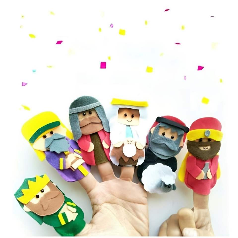 ชุดของเล่นหุ่นนิ้วมือแบบอินเทอร์แอคทีฟสำหรับเล่านิทานเรื่องราวเกี่ยวกับการประสูติของพระเยซู ประกอบด้วยตัวละครสำคัญในเทศกาลคริสต์มาส สำหรับเด็กและครอบครัว