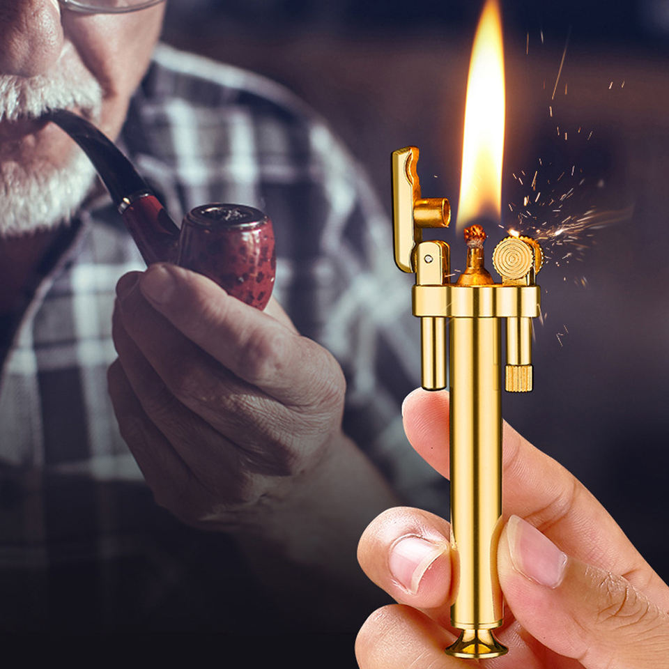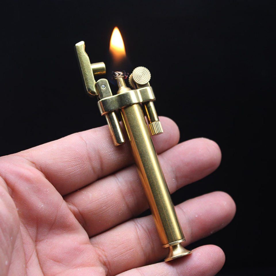 ไฟแช็คน้ำมันก๊าดทรงเพรียวบาง ดีไซน์สร้างสรรค์ แยกส่วนได้ ทำจากทองเหลือง สไตล์เรโทร พร้อมล้อลับแบบหมุน ใช้ได้กับน้ำมันเบนซิน พกพาสะดวก เหมาะสำหรับผู้ชาย