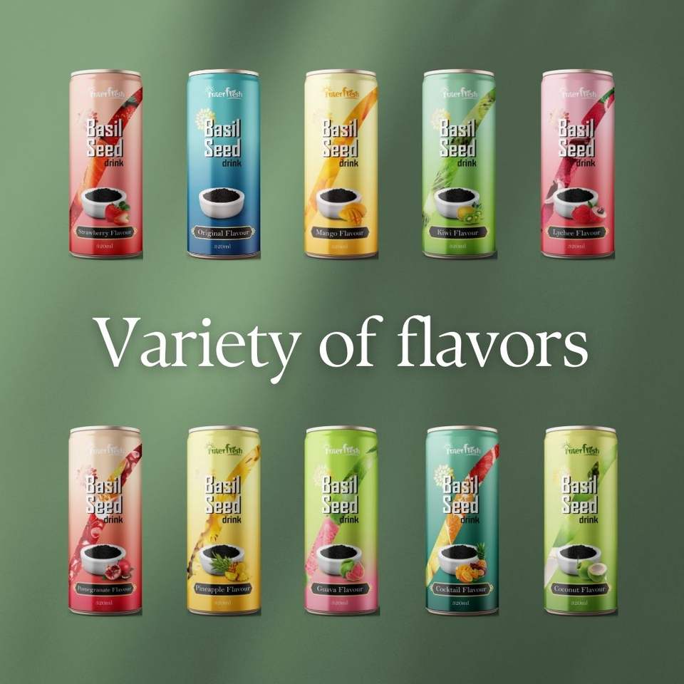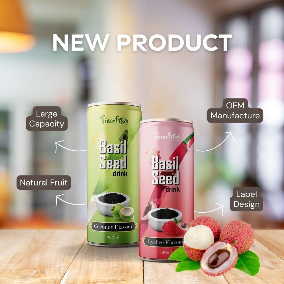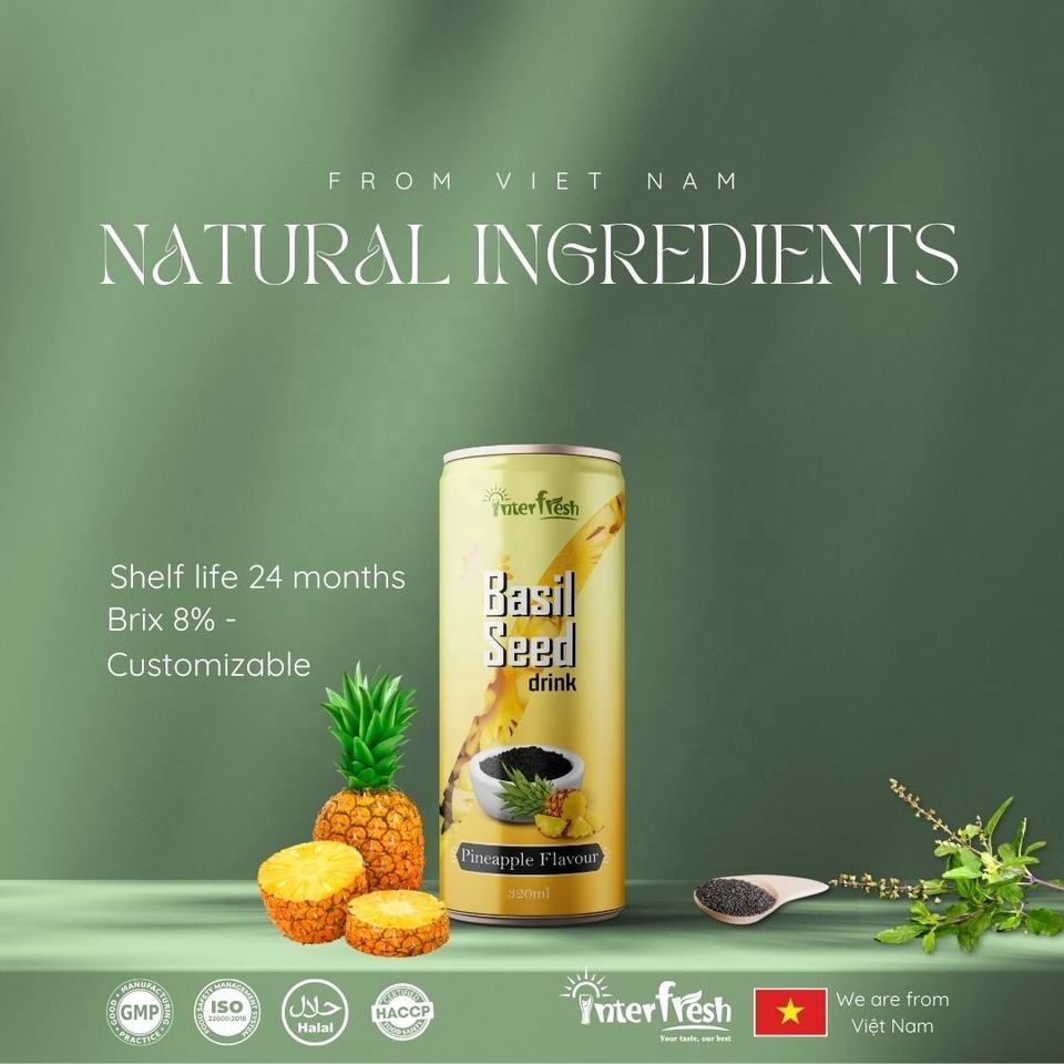 เครื่องดื่มเมล็ดเจียแบบอินเตอร์เฟรชสามารถกรองรสชาติตามธรรมชาติและมีสี320มล. ผู้ผลิตจากเวียดนาม