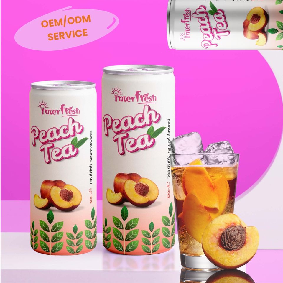 ผลิตเครื่องดื่มอินเตอร์เฟรชเครื่องดื่มชาผลไม้เขตร้อนพร้อมเครื่องดื่มชาฮาลาล HACCP รสพีชฉลากส่วนตัว OEM
