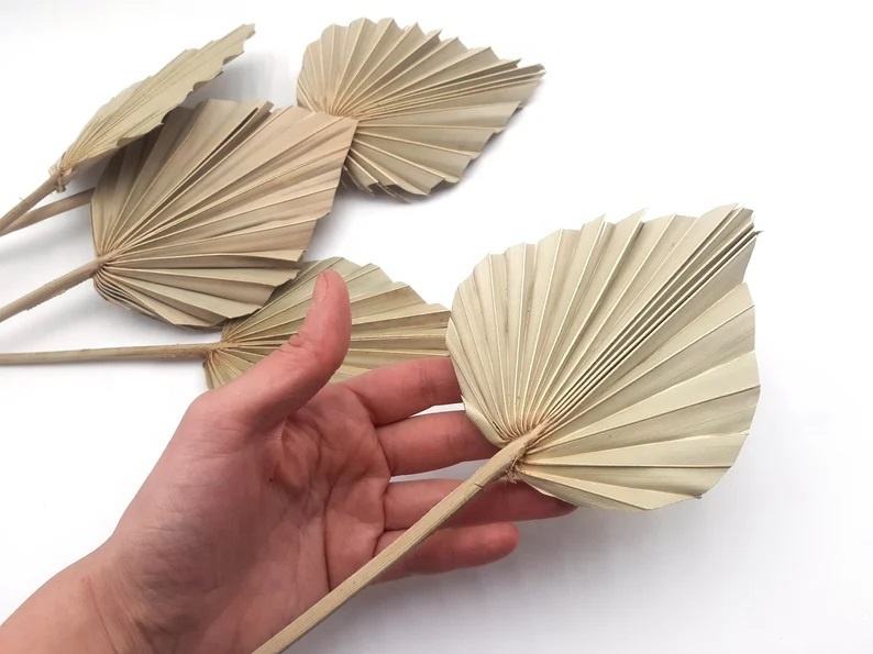 การตกแต่งภายในของตกแต่งใบปาล์มแห้งและพัดมือไม้ไผ่ศิลปะพื้นบ้านสไตล์เวียดนามต้นกำเนิดของตกแต่งงานแต่งงานในแจกันมีหลายขนาด