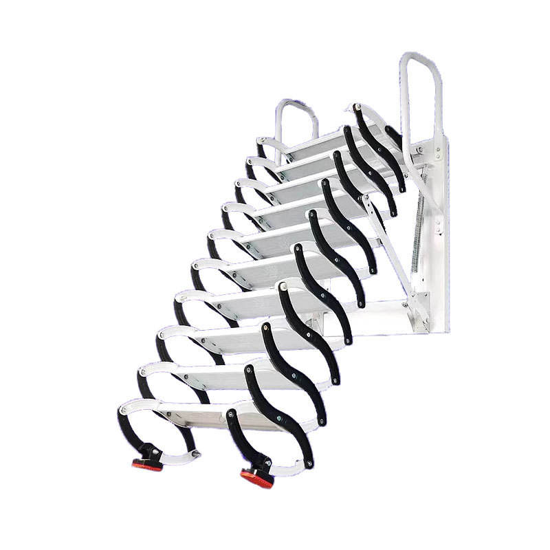 ราวจับภายในบ้าน บันไดพับเก็บได้แบบใสติดผนังภายนอกสำหรับห้องใต้หลังคา บันไดวิลล่าแบบพับเก็บได้ด้วยมือ
