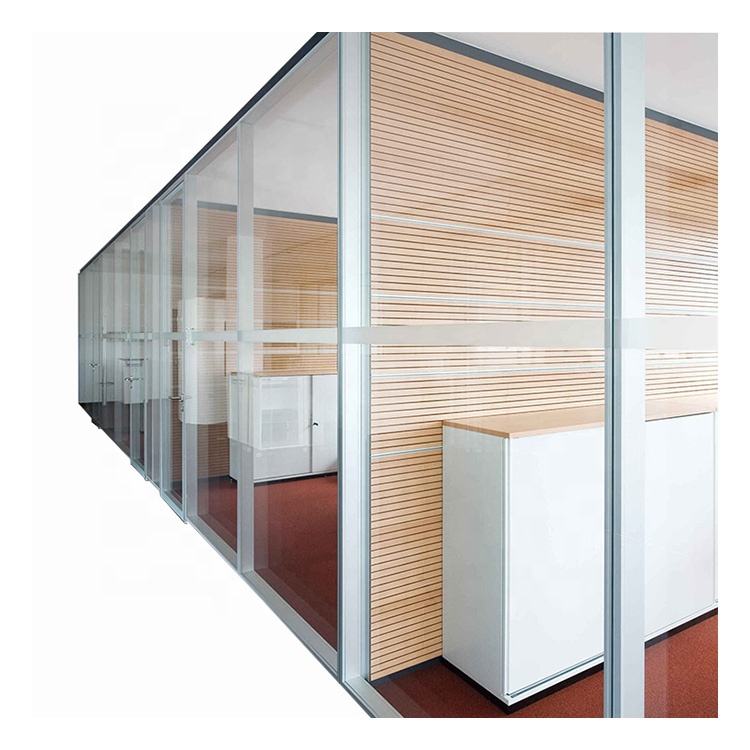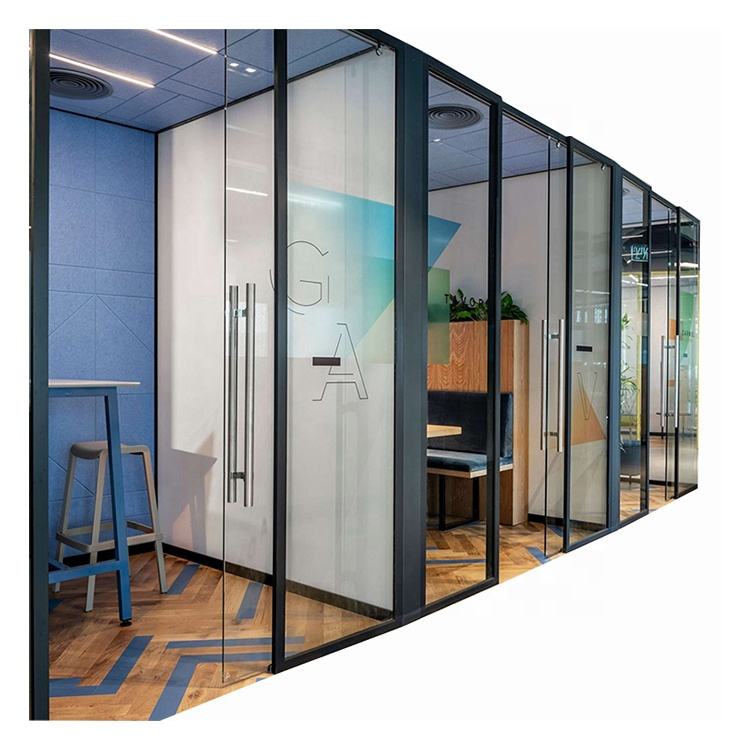 ผนังกั้นห้องกระจกสำนักงานแบบใช้ในอาคาร ผนังกระจกแบบม่านพร้อมประตูกระจกบานเลื่อน