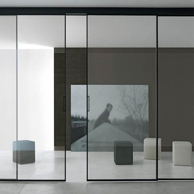 ประตูบานเลื่อนกระจกอลูมิเนียมพาร์ทิชันภายในบางกรอบแคบอลูมิเนียมบานเลื่อนและดึงระบบบานเลื่อนกระจกเทมเปอร์