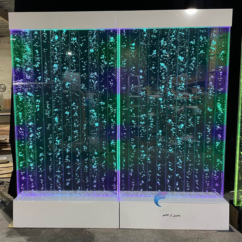 ผนังกั้นอะคริลิคสำหรับร้านกาแฟ ดีไซน์ตกแต่งภายใน พร้อมไฟ LED และแผงน้ำตกแบบฟองอากาศ