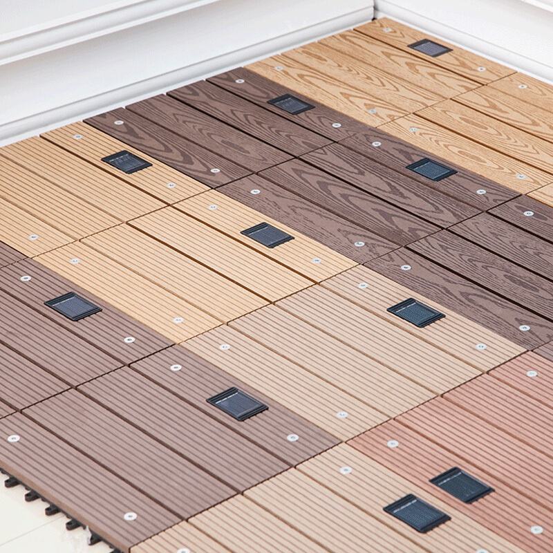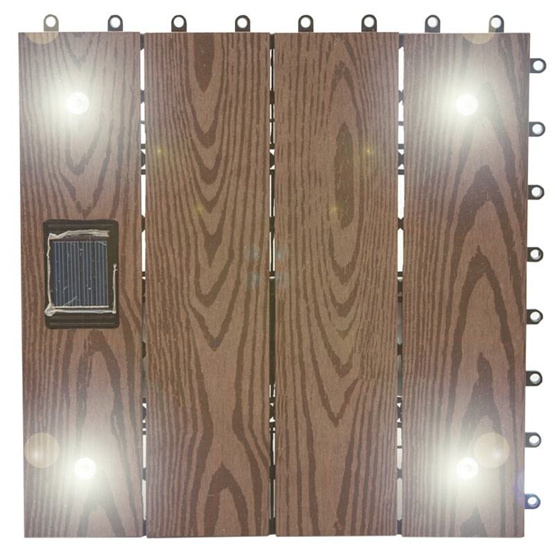 ประสานกันลื่นไม้พลาสติกคอมโพสิตดาดฟ้ากระเบื้อง DIY WPC พื้นระเบียงกระเบื้องที่มีไฟ LED