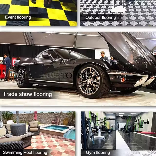 กระเบื้องปูพื้นโรงรถกันลื่นทำจากวัสดุ PP แบบประสานพร้อมพื้นไวนิลดีไซน์ทันสมัยสำหรับใช้ในร่ม